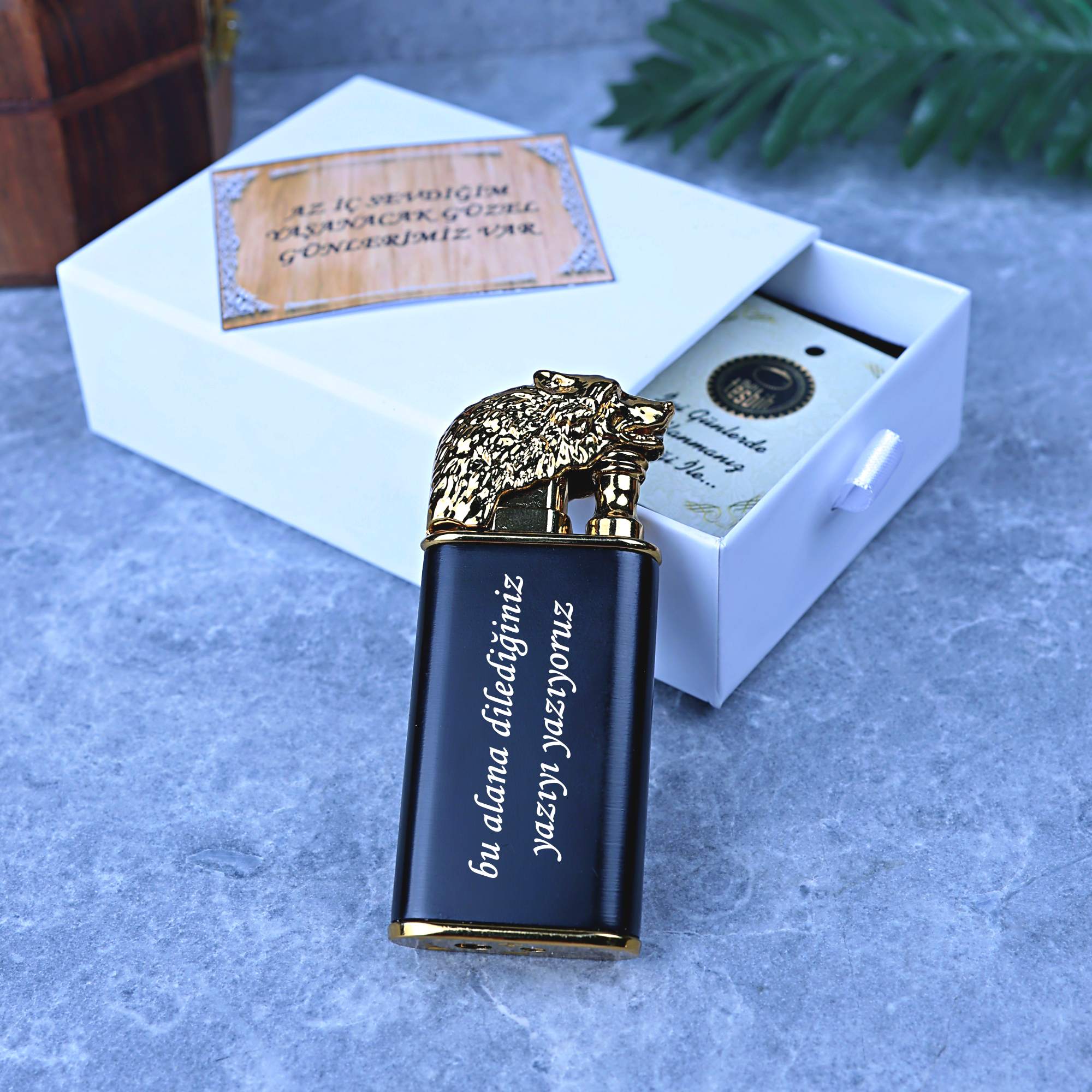 ÇAKMAK KİŞİSELLEŞTİRME alanından çakmak üzerine yazılmasını istediğiniz yazıyı ve kutu içerisine eklenmesini istediğiniz özel notu yazabilirsiniz.