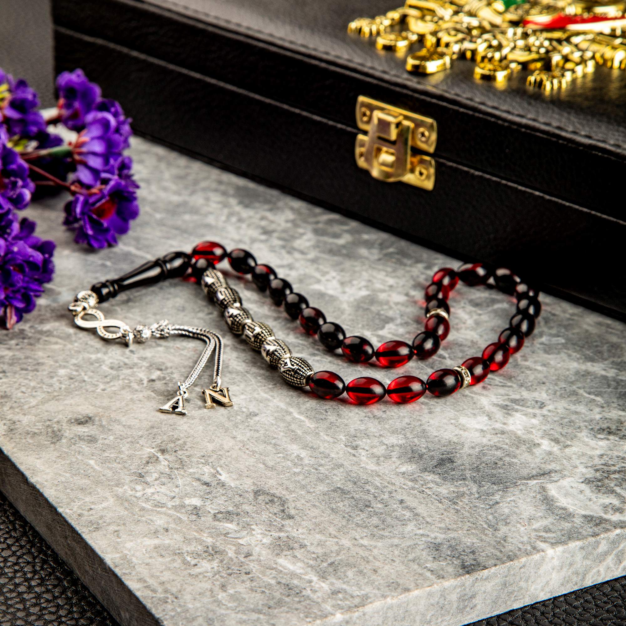 Tespihlerimiz en kaliteli taşlardan özenle seçilerek tespih üzerine anti manyetik harflerden isime özel hazırlanır.