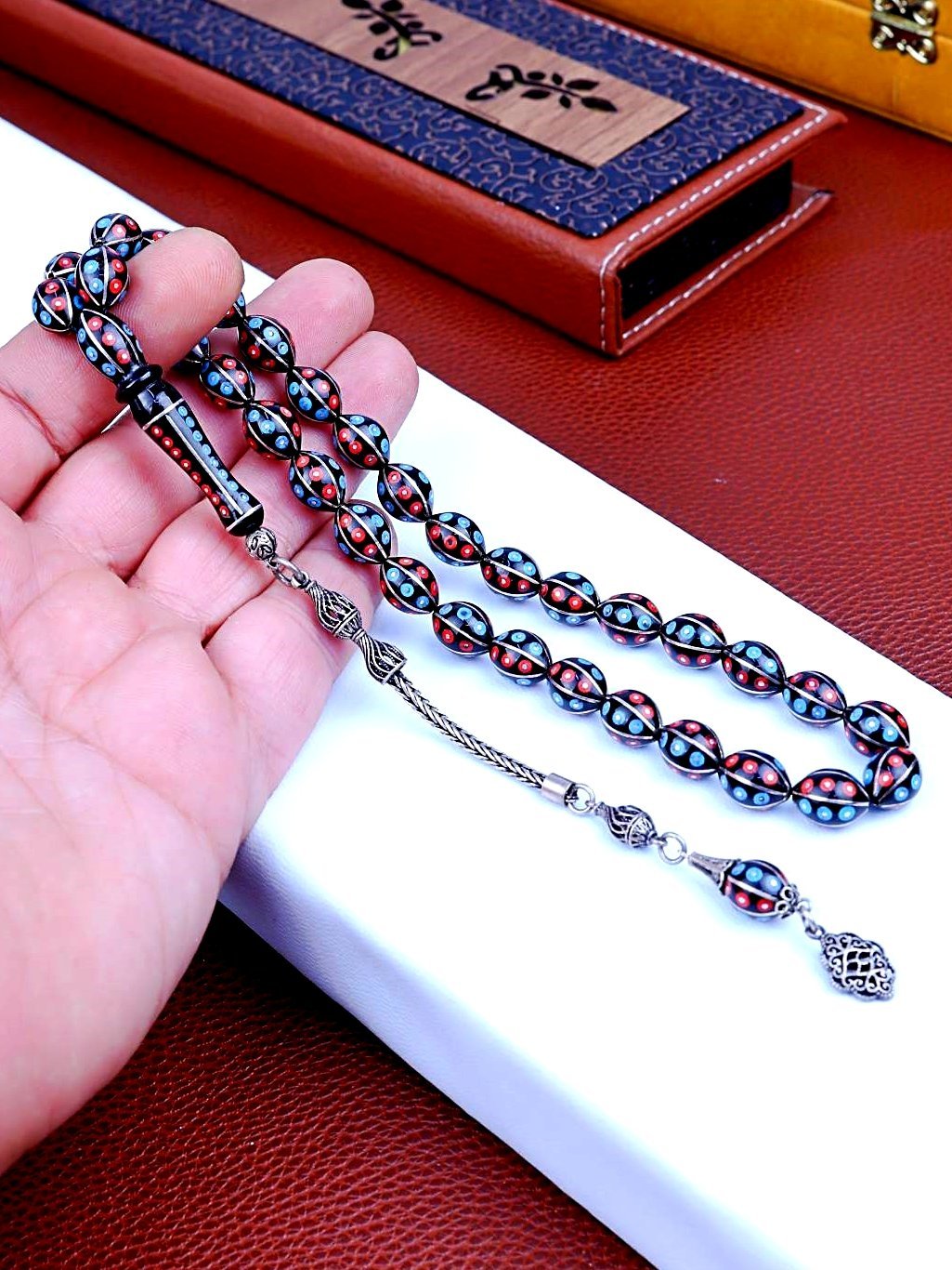 Tespih üzerindeki şlemeler orijinal gümüştür.