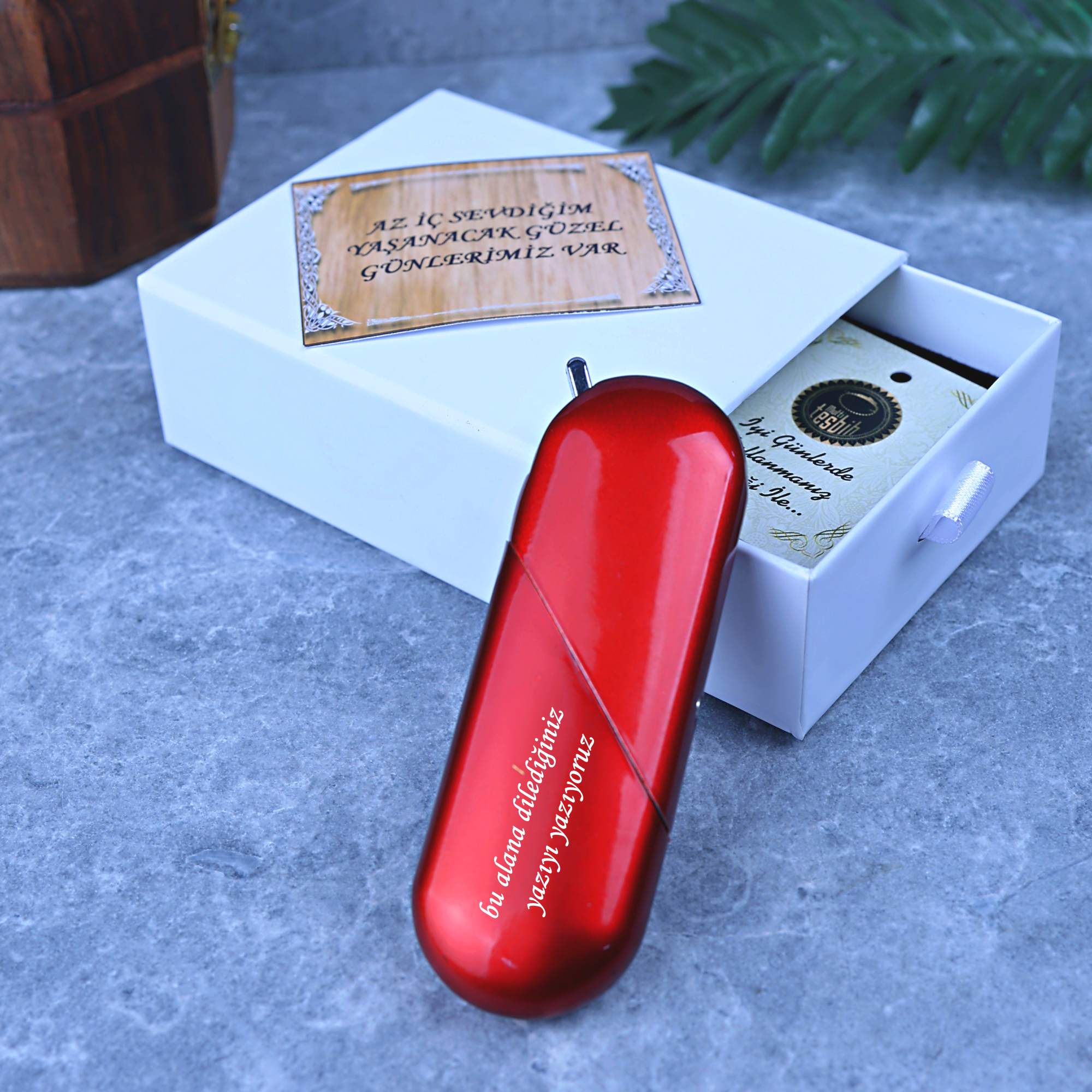 ÇAKMAK KİŞİSELLEŞTİRME alanından çakmak üzerine yazılmasını istediğiniz yazıyı ve kutu içerisine eklenmesini istediğiniz özel notu yazabilirsiniz.