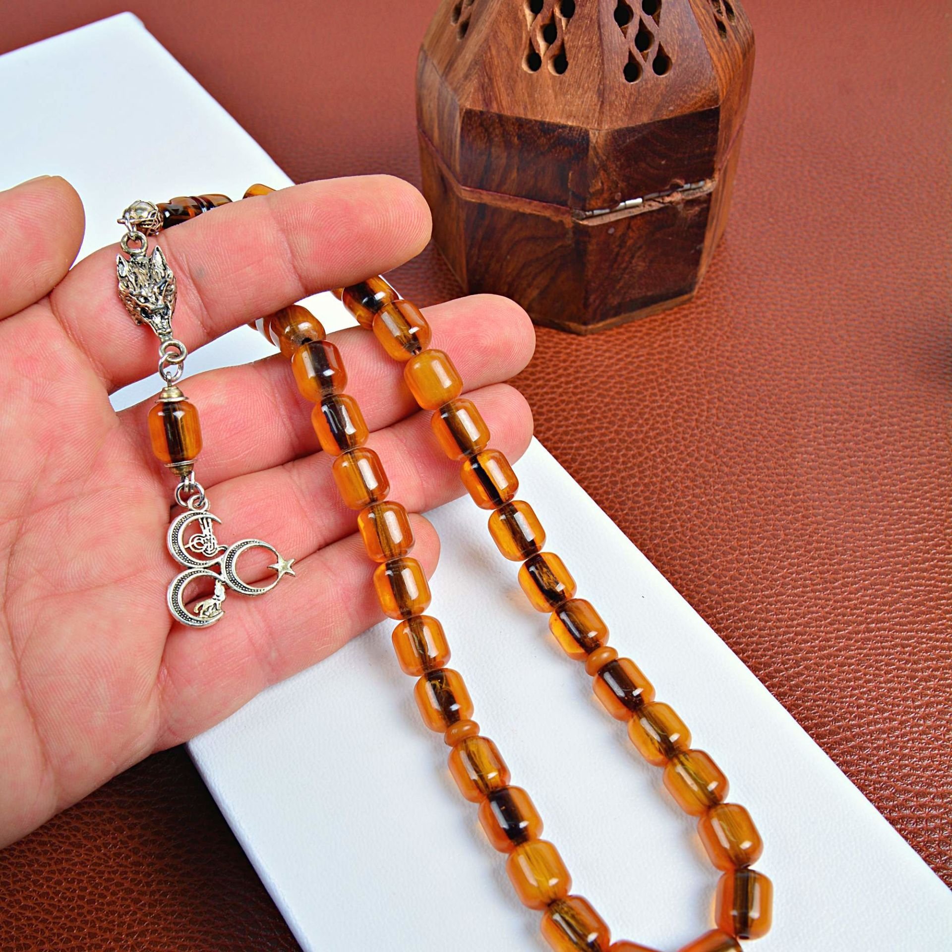 Uçhilal tasarım püsküllü sıkma kehrşbar tespih