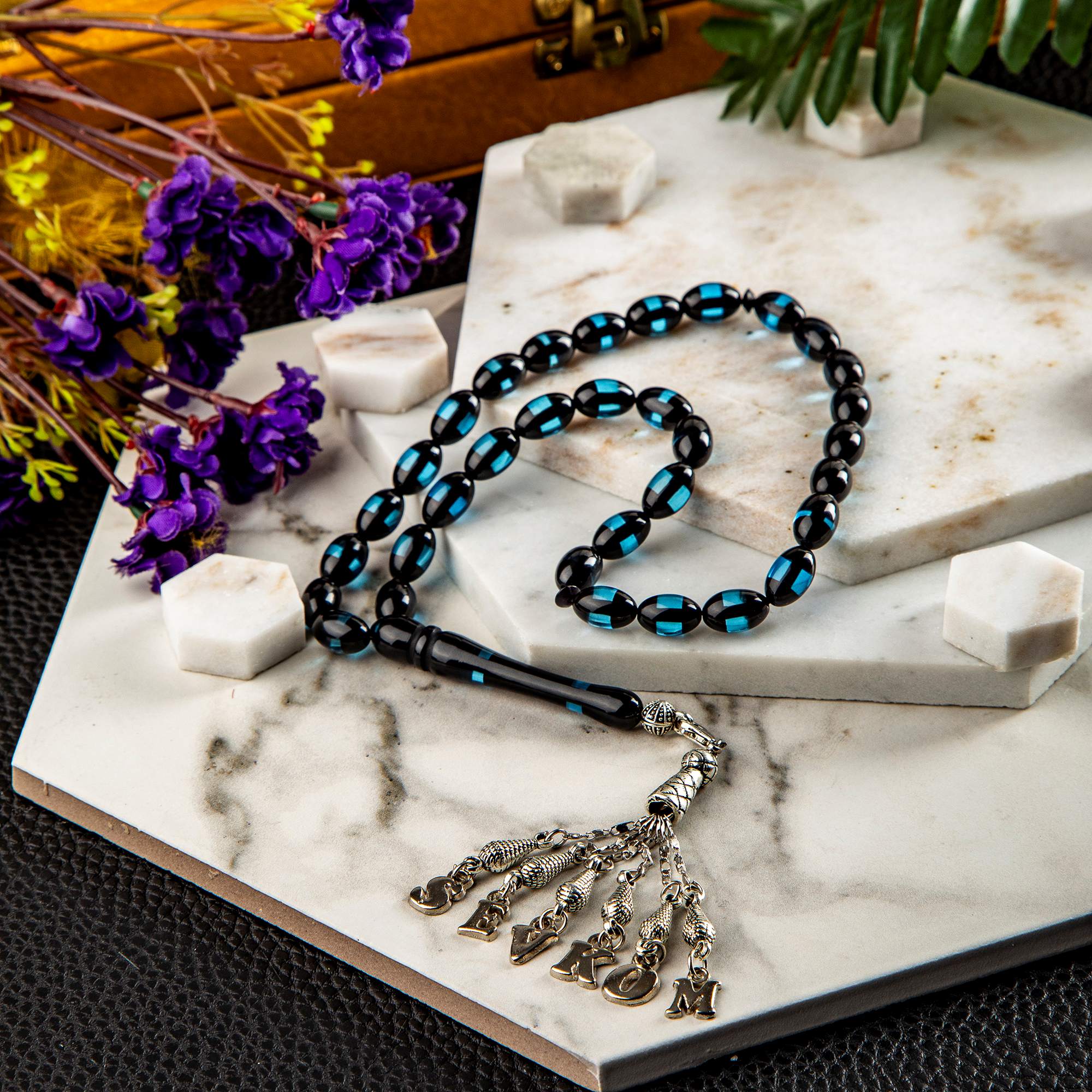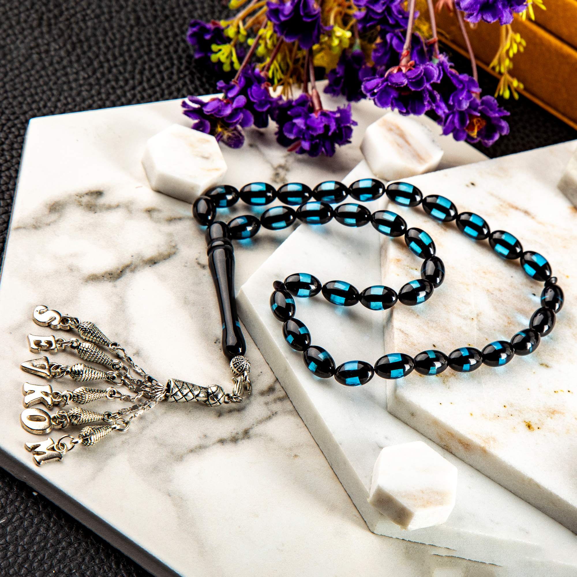 Tespihlerimiz en kaliteli taşlardan özenle seçilerek anti manyetik harflerden isime özel hazırlanır.