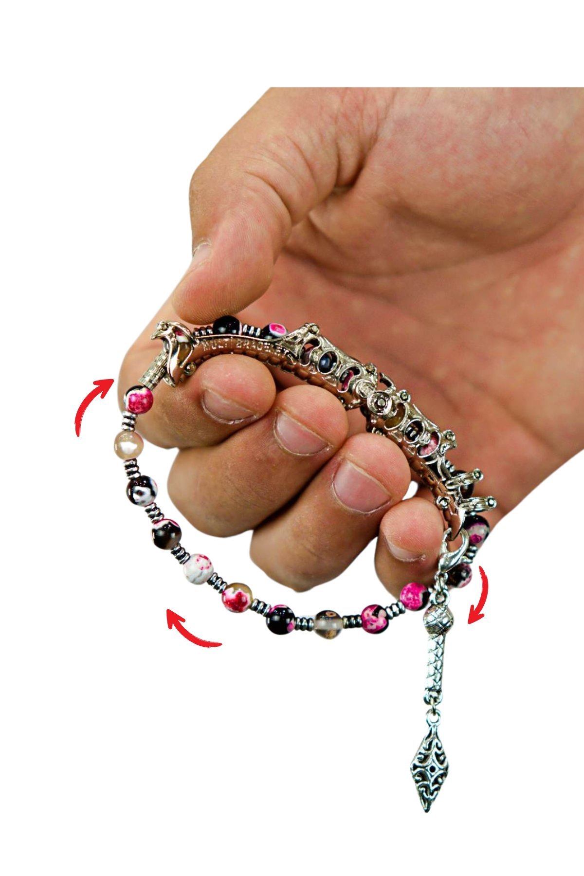 Bay bayan uyumlu bu harika tasarım 2 farklı Bileklik ve ayrıca çok eğlenceli bir parmak çarkına dönüşebiliyor.