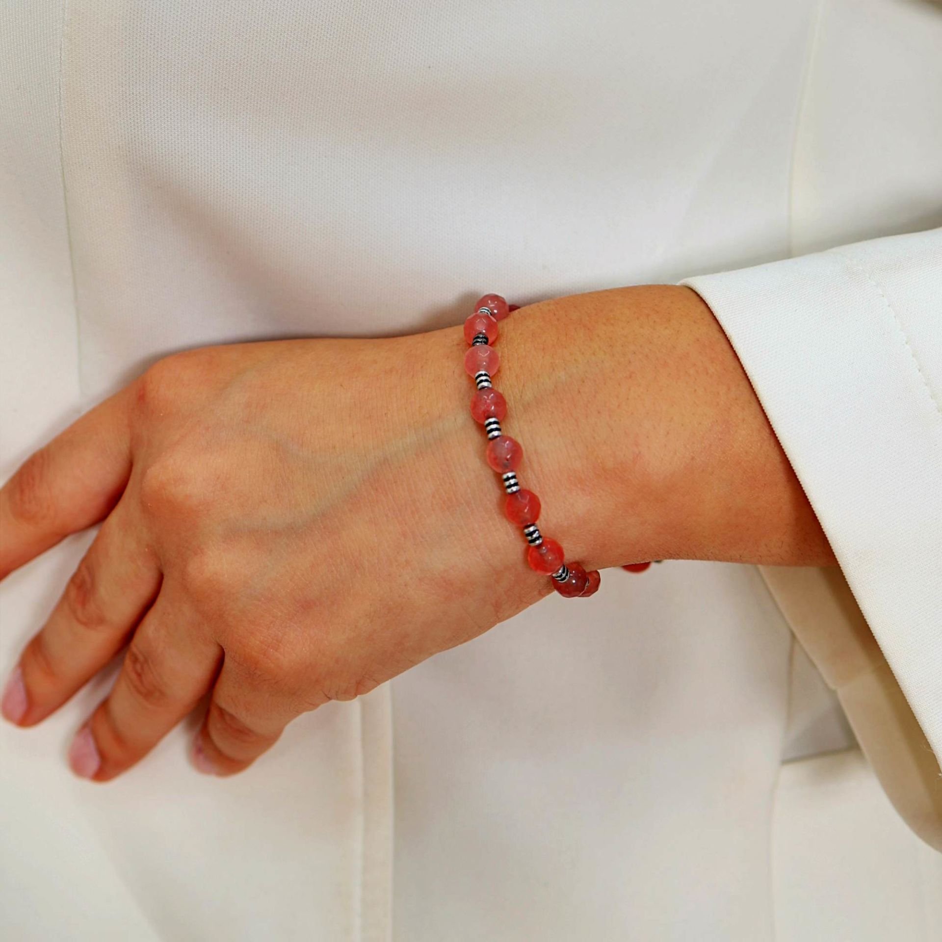 925 ayar gümüş bileklikli 6 mm Faset kesim pembe kuvars doğaltaş bilekliği esnek misinalı ve vidalı olarak özel tasarlanmıştır.