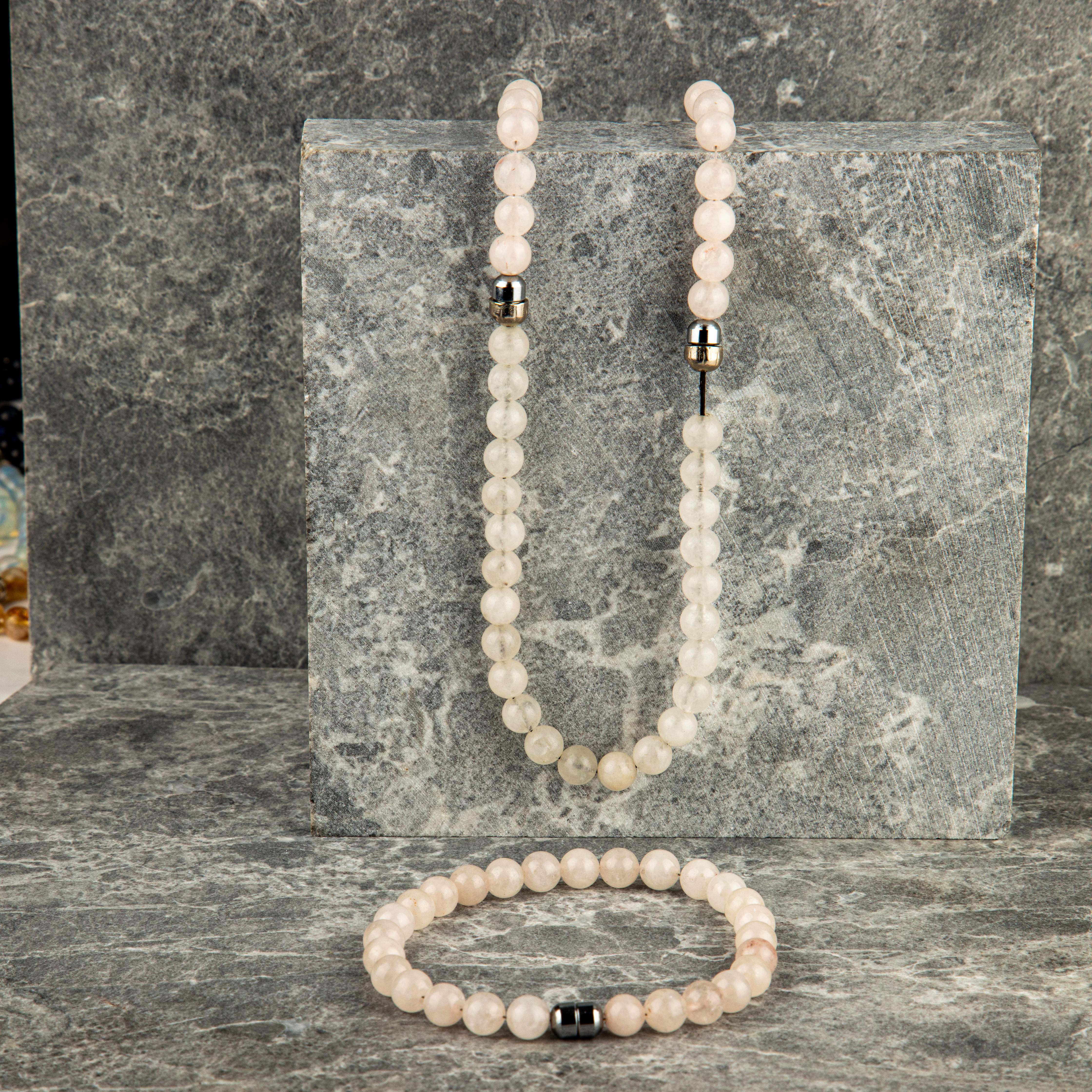 PEMBE QUARTZ TAŞI BİLEKLİK OLAN KOLYE
