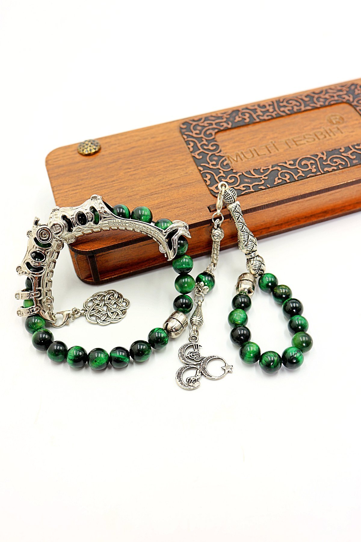Yeşil Kaplangözü dogaltaş Multi Tespih, özel kararmaz flex aparat ve ultra güçlü mıknatıs sistemi sayesinde