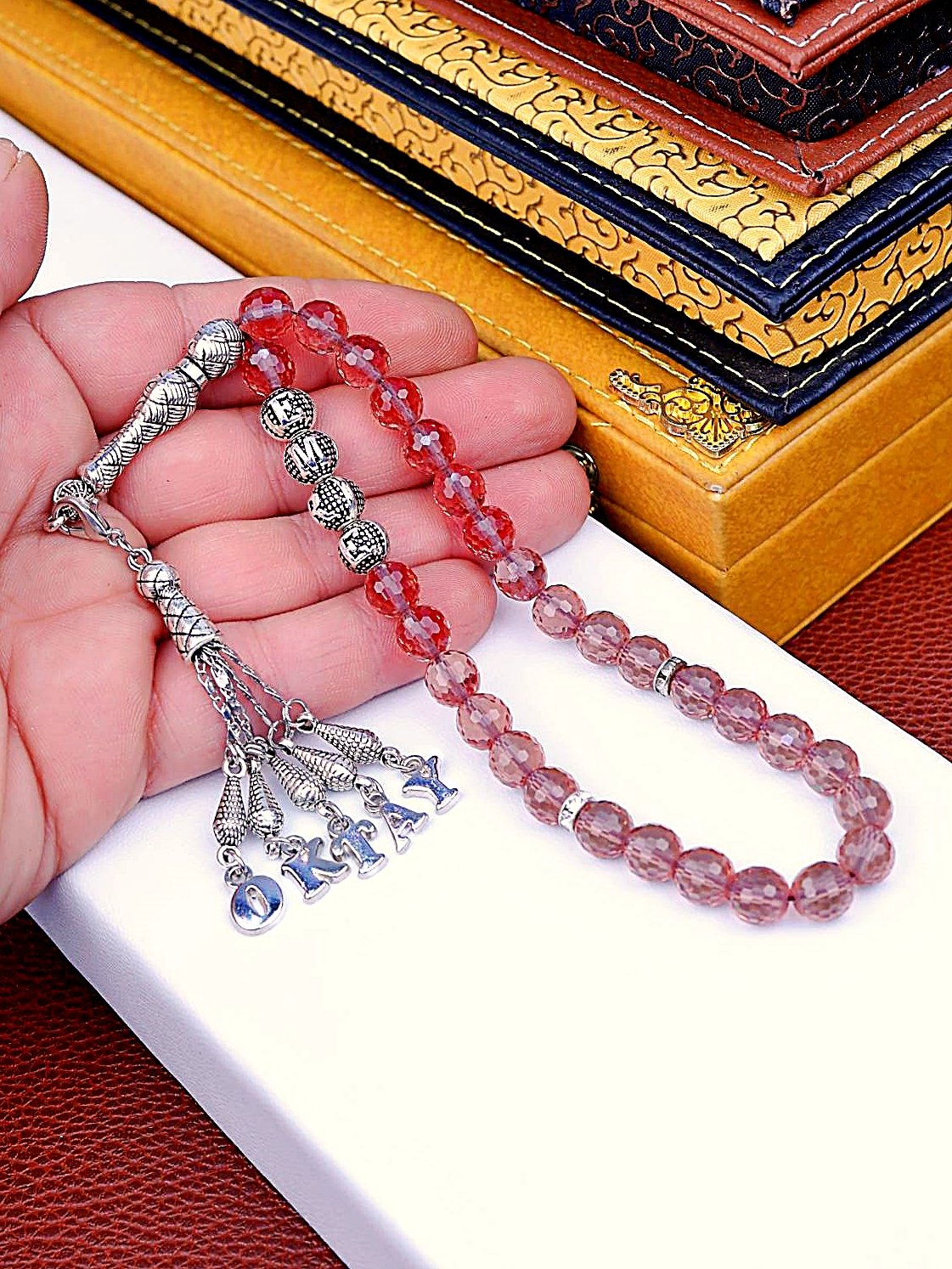 Tespihlerimiz en kaliteli taşlardan özenle seçilerek tespih üzerine anti manyetik harflerden isime özel hazırlanır.